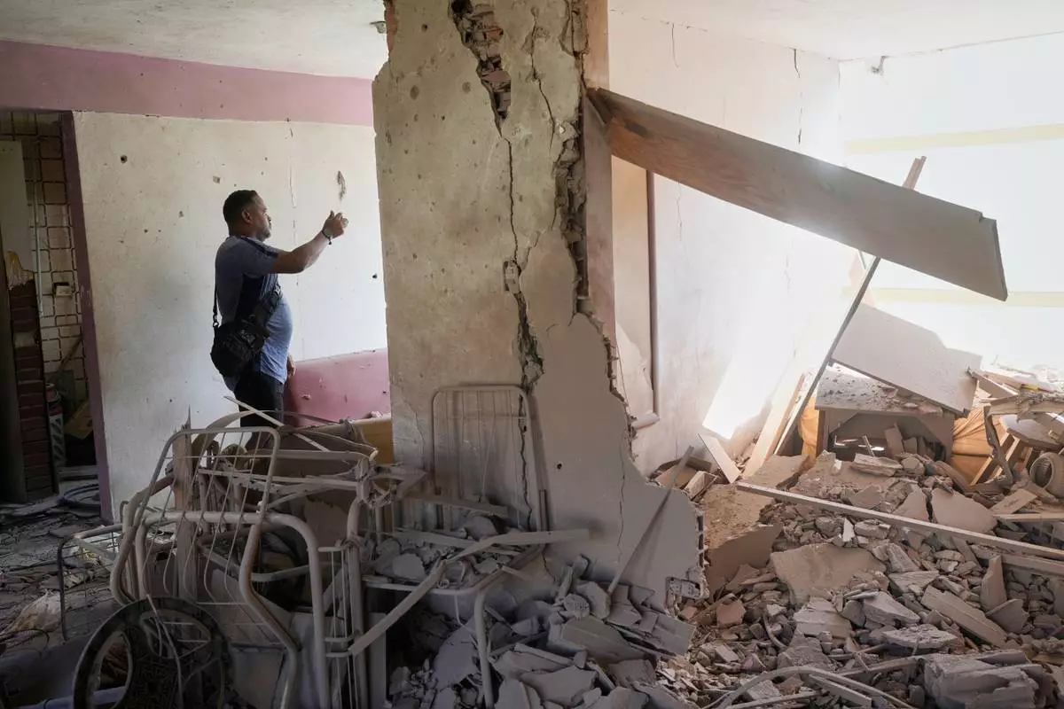 Reggie Carrera looks at the damage at the home of his friend Jesus Linares, who says it was hit during U.S. military operations to capture Venezuelan President Nicolas Maduro, in Catia La Mar, Venezuela, Sunday, Jan. 4, 2026. (AP Photo/Matias Delacroix)