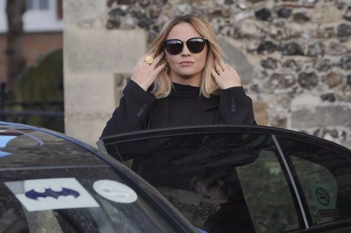 Kimberley Walsh arrives the funeral service of One Direction singer Liam Payne at St Mary's Church in Amersham, England, Wednesday, Nov. 20, 2024. (Jonathan Brady/PA via AP)