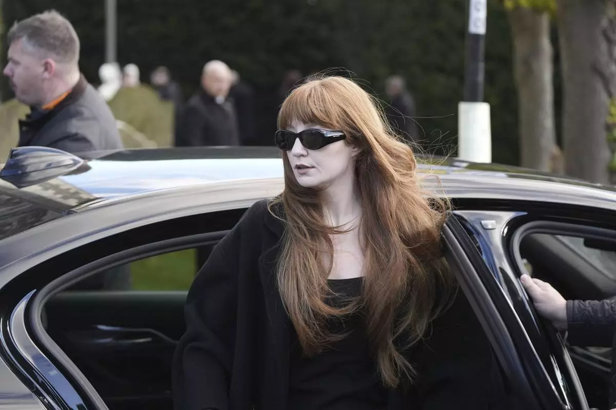 Nicola Roberts arrives for the funeral service of One Direction singer Liam Payne at St Mary's Church in Amersham, England, Wednesday, Nov. 20, 2024. (Andrew Matthews/PA via AP)