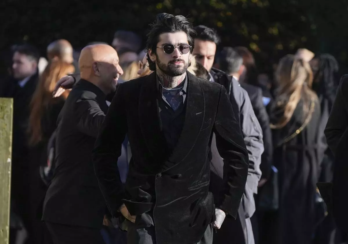 Zayn Malik walks after the funeral service for One Direction singer Liam Payne at St Mary's Church in Amersham, England, Wednesday, Nov. 20, 2024. (Andrew Matthews/PA via AP)
