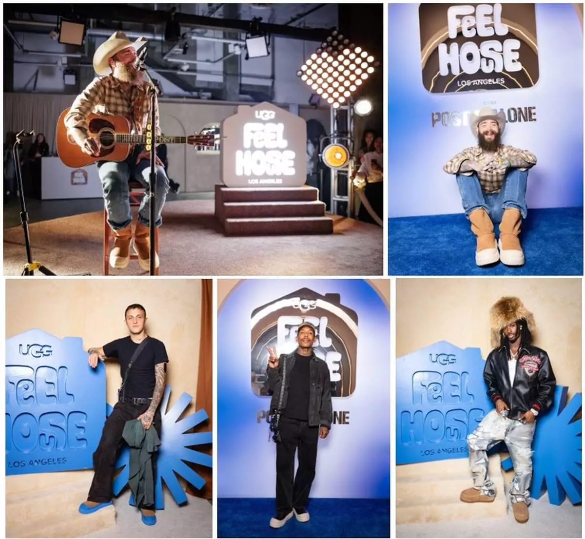 To celebrate the opening of Feel House Los Angeles, UGG® and nine-time diamond-certified GRAMMY® Award-nominated phenomenon Post Malone hosted an exclusive, invite-only event on Saturday, November 16. Notable guests including Anwar Hadid, Alton Mason, Boo Johnson, Akira Akbar, Allison Kane, Hunter Woodhall, Lil Cherry, Larsen Thompson, Reese Cooper, Mario, and more, were treated to a special live performance by Post Malone, set by DJ Odalys, bespoke UGG® product customization by Clint Orms, catering by Craig’s LA, specialty cocktails and beverages by SCHAFFER, and exclusive UGG® Classic Boots in the same custom multi-camo print that UGG® and Post Malone co-created in 2023 for a one-of-a-kind pair he was seen wearing at his soundcheck at Super Bowl LVIII in February 2024.