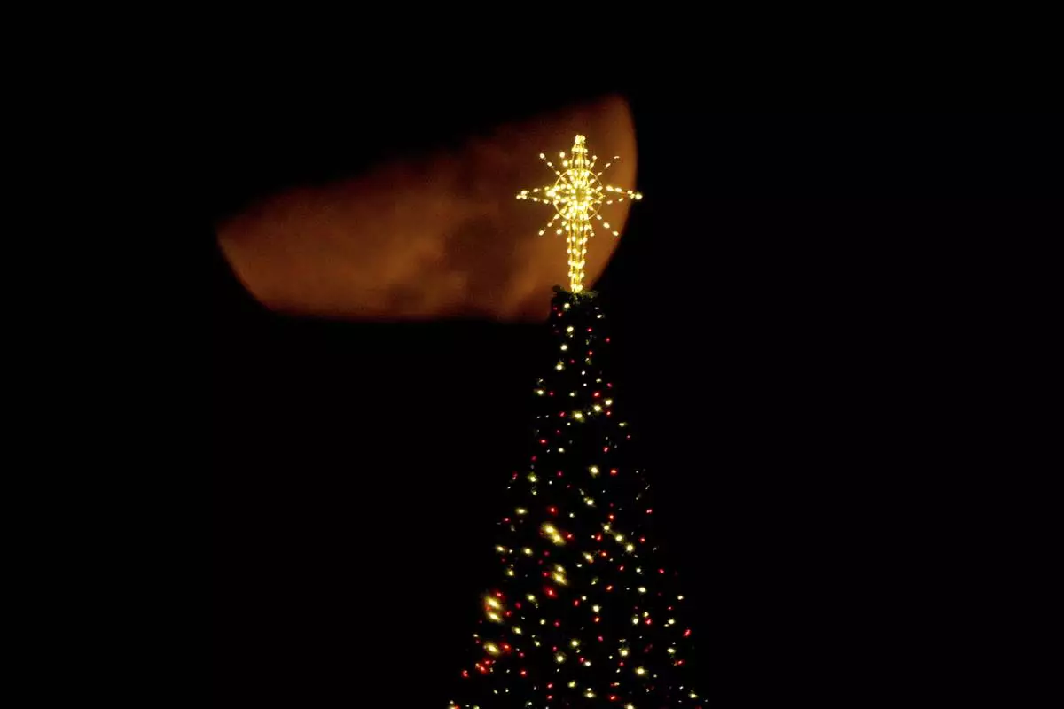 The Rockefeller Center Christmas tree is seen at the tree lighting ceremony on Wednesday, Dec. 4, 2024, in New York. (Photo by Andy Kropa/Invision/AP)