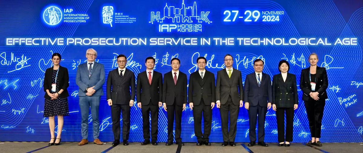 The Chief Executive, Mr John Lee; the Secretary for Justice, Mr Paul Lam, SC; and the First Deputy Prosecutor General of the Supreme People's Procuratorate of the People's Republic of China, Class One Grand Prosecutor andVice-President of the IAP, Mr Tong Jianming, delivered their welcome speeches today at the opening ceremony, marking the beginning of a series of discussions and exchanges focused on strengthening international efforts against technology-related crimes. The keynote speech was delivered by the Director of Public Prosecutions, Ms Maggie Yang.