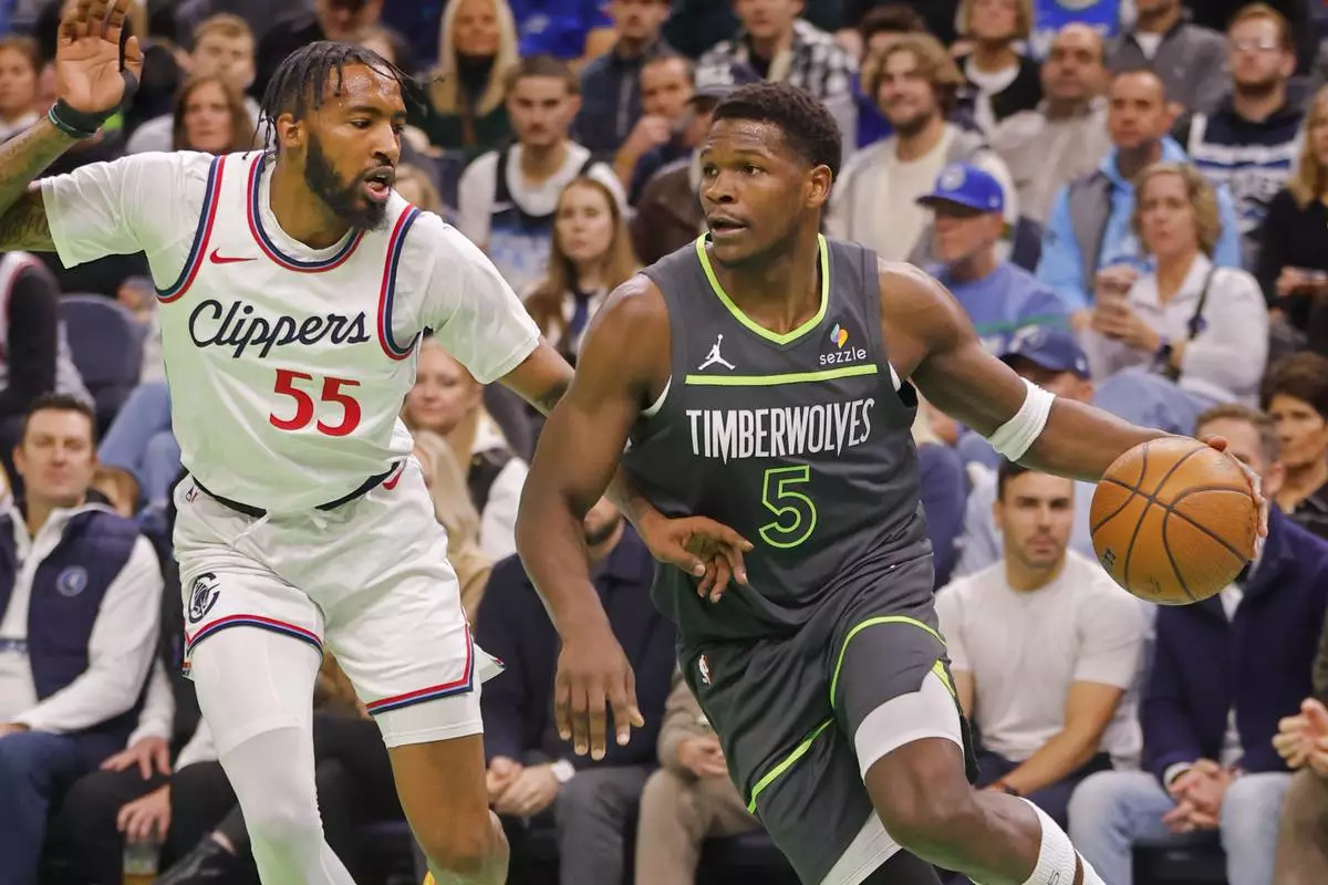 MINNEAPOLIS (AP) — Anthony Edwards scored 21 points on 7-for-21 shooting to help the Minnesota Timberwolves stop a four-game losing streak by holding off the Los Angeles Clippers 93-92 in an NBA Cup game Friday night.