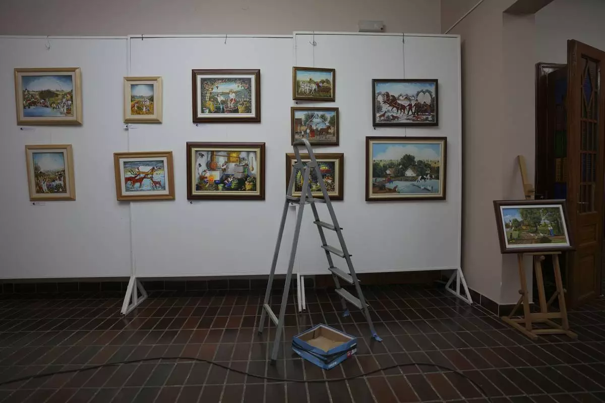 Various paintings in the Gallery of naive art in the village of Kovacica, Serbia, Thursday, Nov. 28, 2024. (AP Photo/Darko Vojinovic)