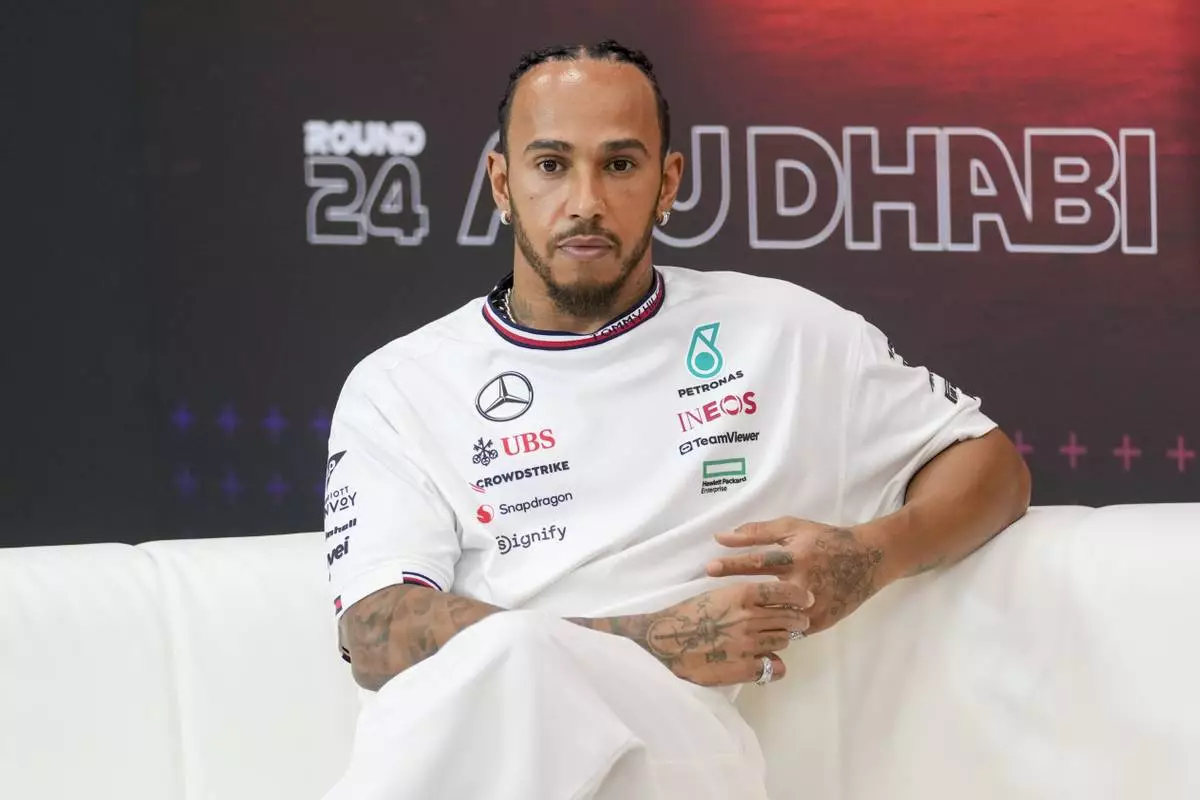 Mercedes driver Lewis Hamilton of Britain attends a news conference ahead of the Formula One Abu Dhabi Grand Prix, at the Yas Marina Circuit in Abu Dhabi, UAE, Thursday, Dec. 5, 2024. (AP Photo/Darko Bandic)