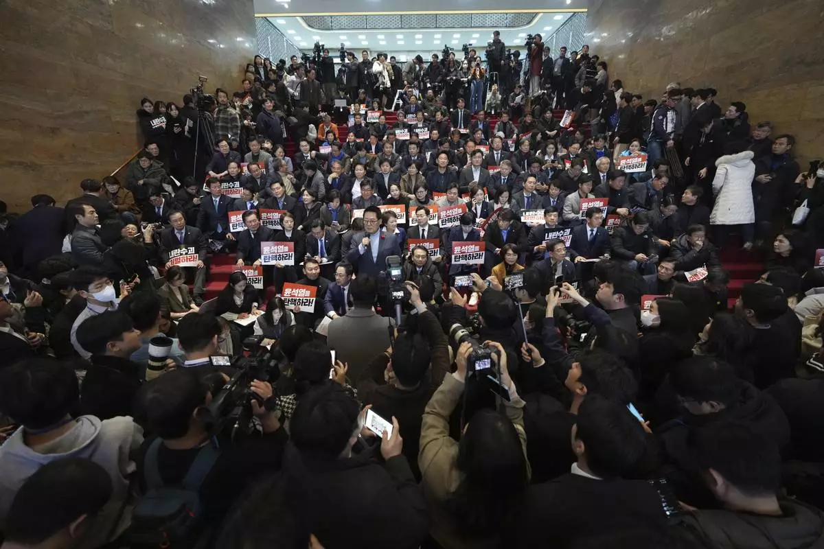 Lee said that prospects for the impeachment motion’s passage is “fluid.” But he said the ruling party wouldn’t survive if it makes a decision that goes against public sentiment. A survey released Thursday indicated that more than 70% of South Koreans support Yoon’s impeachment, while another survey published Friday put Yoon's approval rating at 16%, the lowest since he took office in May 2022.