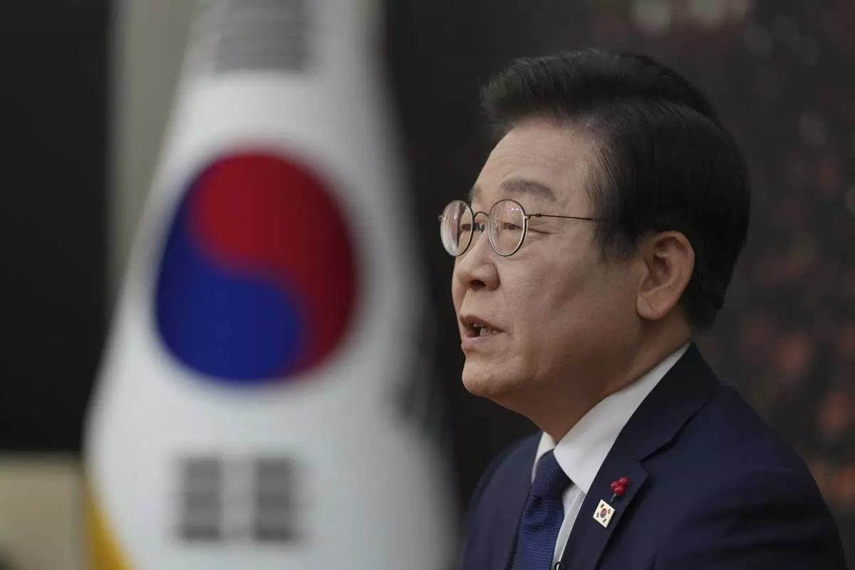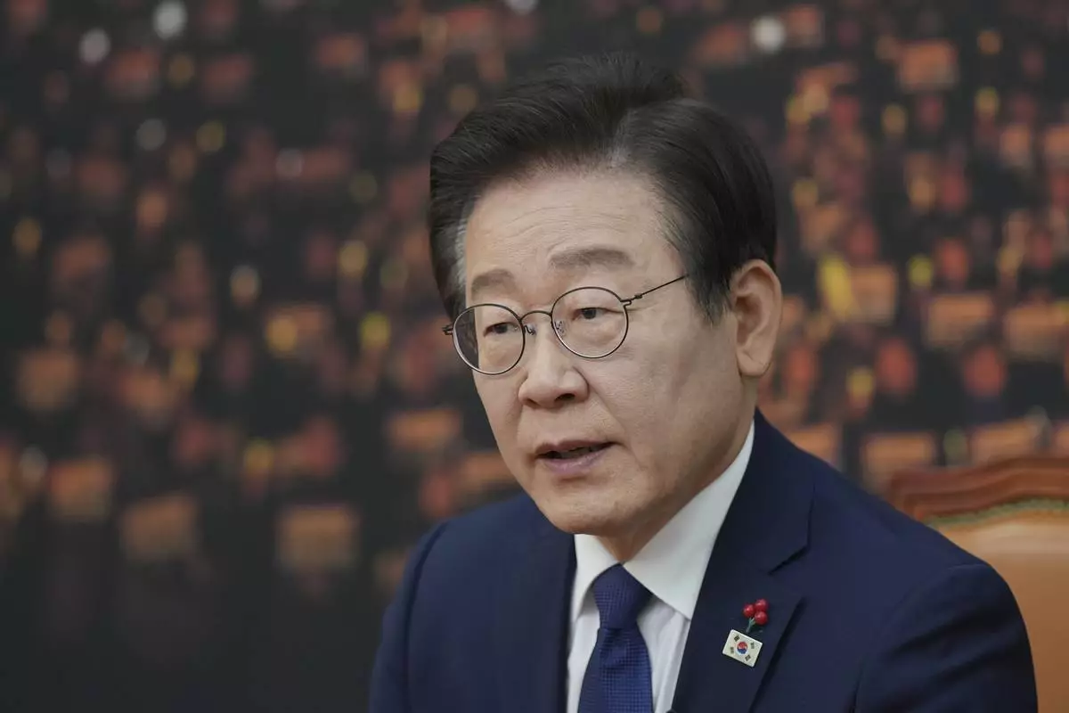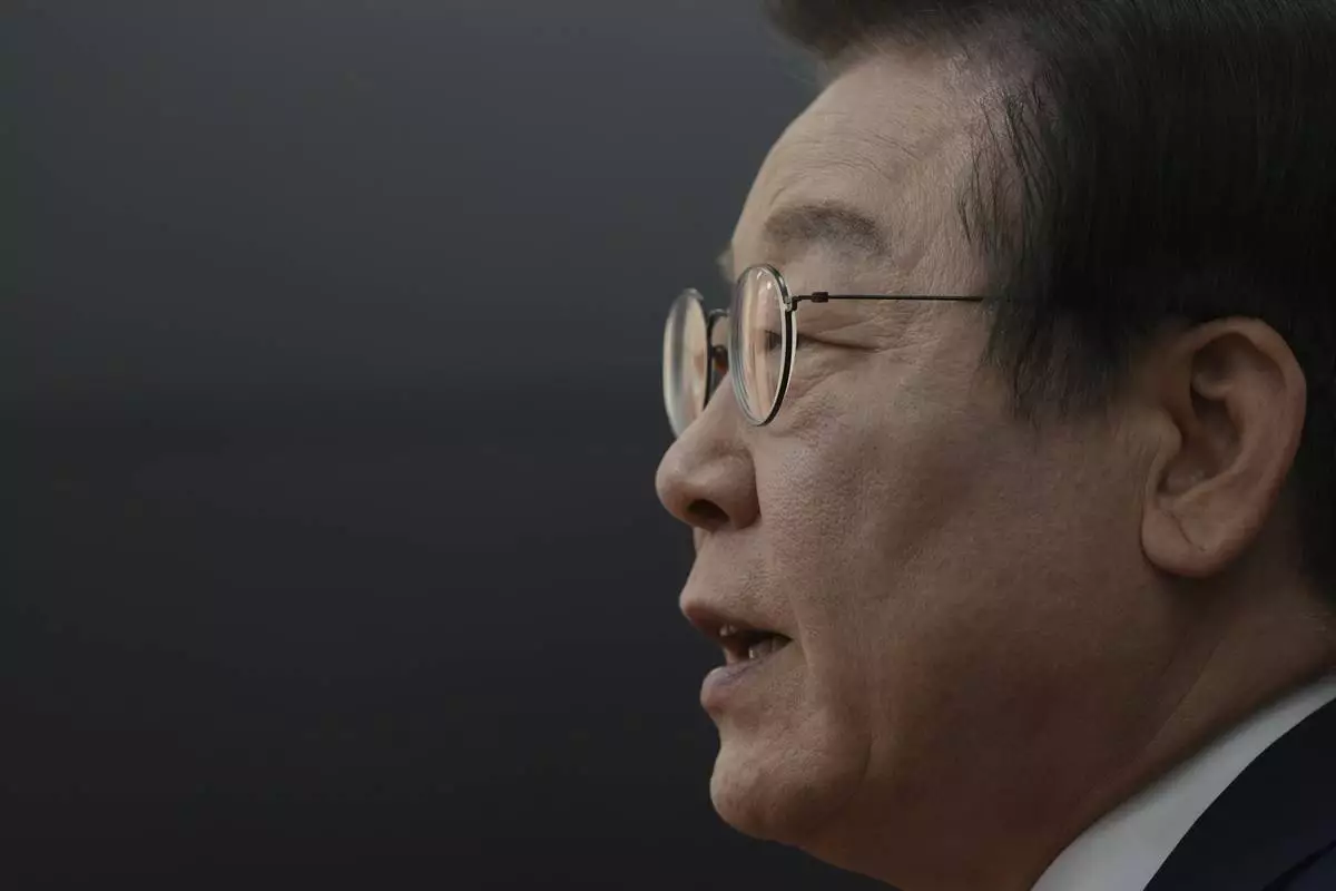 South Korea's main opposition Democratic Party leader Lee Jae-myung speaks during an interview with The Associated Press at the National Assembly in Seoul, South Korea, Friday, Dec. 6, 2024. (AP Photo/Lee Jin-man)