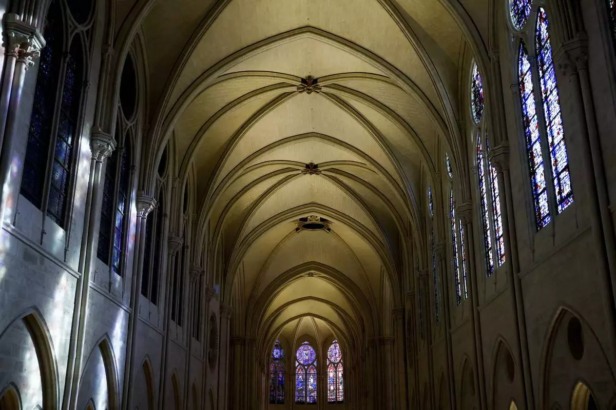 FILE - The vaulted ceiling of the Notre-Dame cathedral is seen on Nov. 29, 2024 in Paris. (Sarah Meyssonnier/Pool Photo via AP, File)