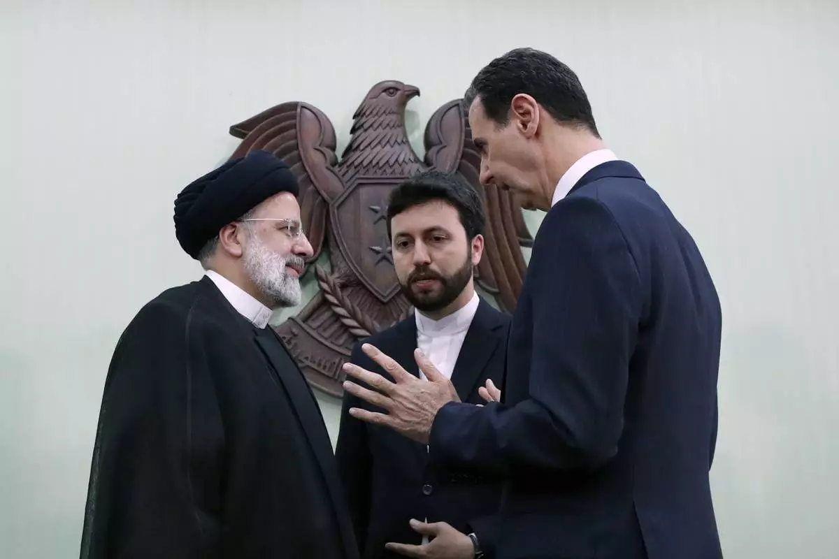 FILE - Syrian President Bashar Assad, right, speaks with Iranian President Ebrahim Raisi, left, in Damascus, Syria, May 3, 2023. (AP Photo/Omar Sanadiki, File)