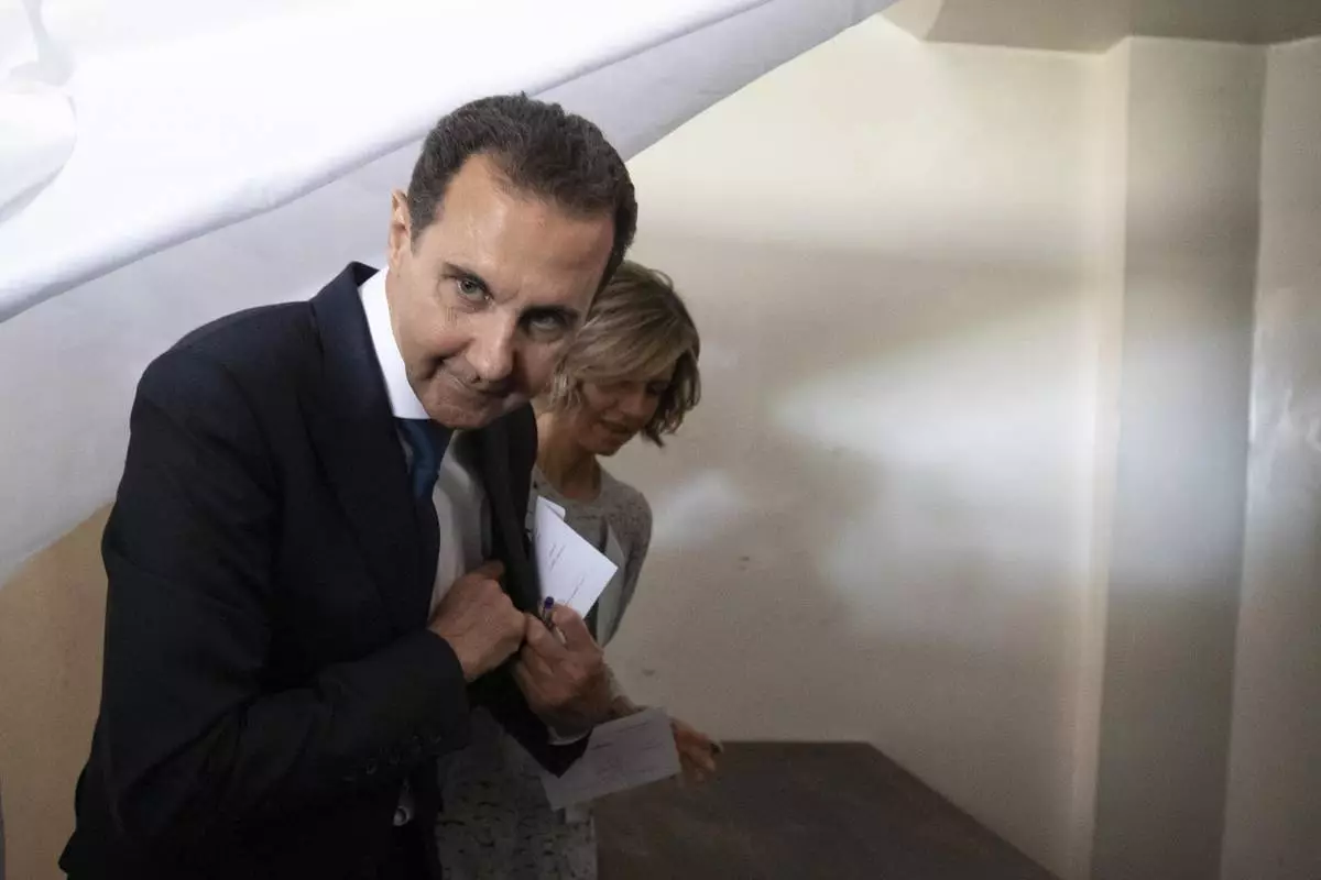 FILE - Syrian President Bashar Assad and his wife Asma prepare to vote at a polling station during the presidential elections in the town of Douma, in the eastern Ghouta region, near the Syrian capital Damascus, Syria, May 26, 2021. (AP Photo/Hassan Ammar, File)