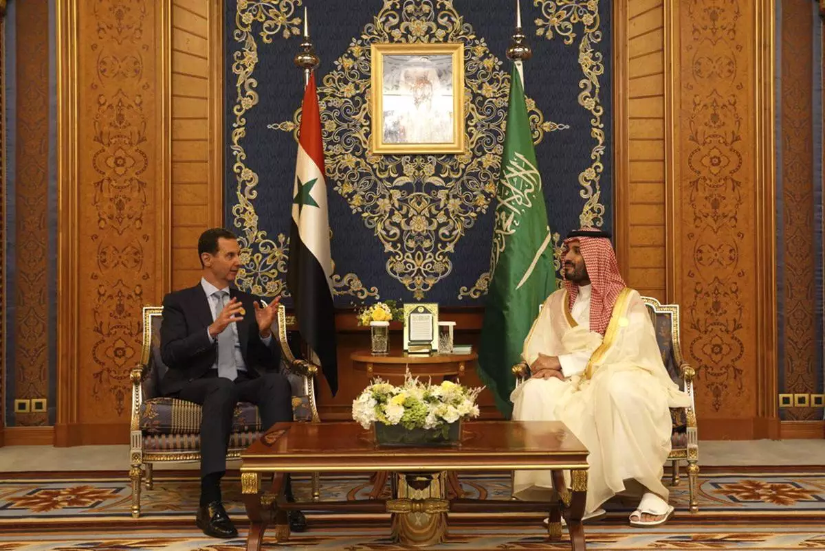 FILE - In this photo released by the Syrian official news agency SANA, shows Syrian President Bashar Assad, left, meets with Saudi Crown Prince Mohammed bin Salman, during the Arab summit in Jeddah, Saudi Arabia, May 19, 2023. (SANA via AP, File)