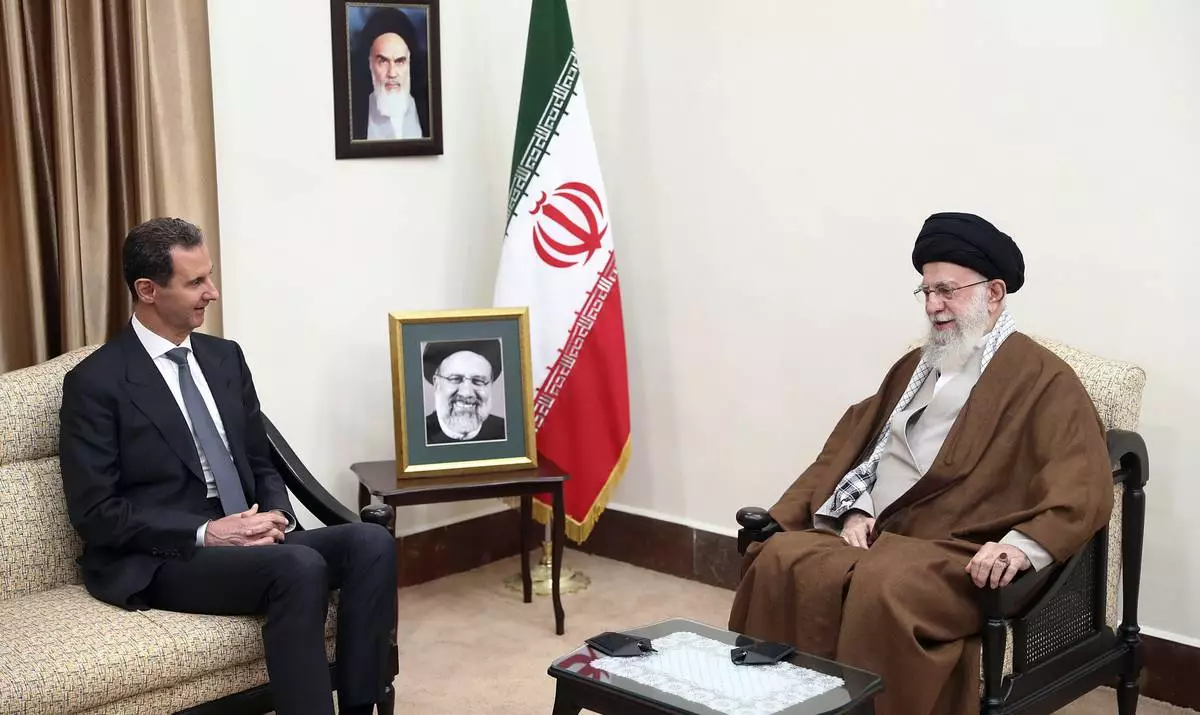FILE - In this photo released by the official website of the office of the Iranian supreme leader, Supreme Leader Ayatollah Ali Khamenei, right, speaks with Syrian President Bashar Assad in a meeting in Tehran, Iran, May 30, 2024. (Office of the Iranian Supreme Leader via AP, File)