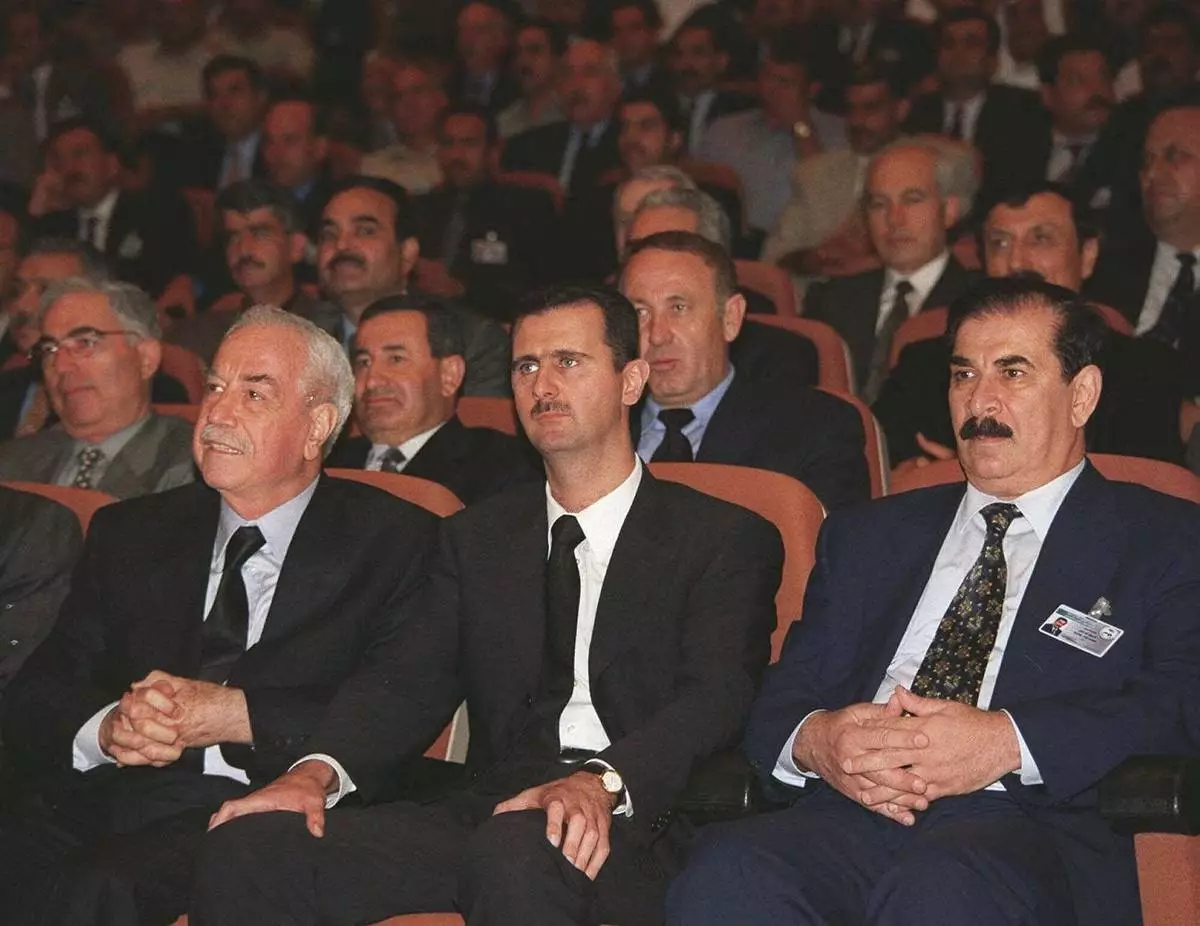 FILE - Bashar Assad, second right, is seen during the closing session of the ruling Baath party congress in Damascus, Syria, June 20, 2000. (SANA via AP, File)