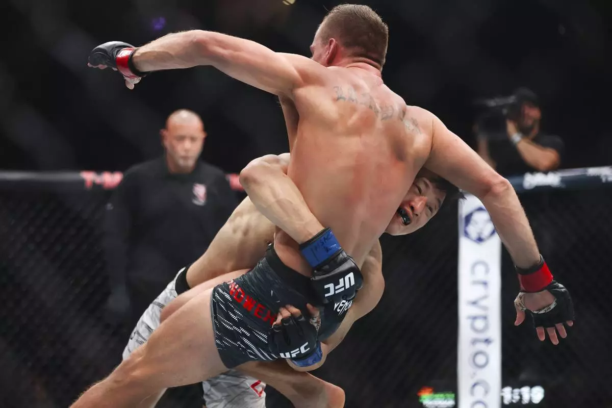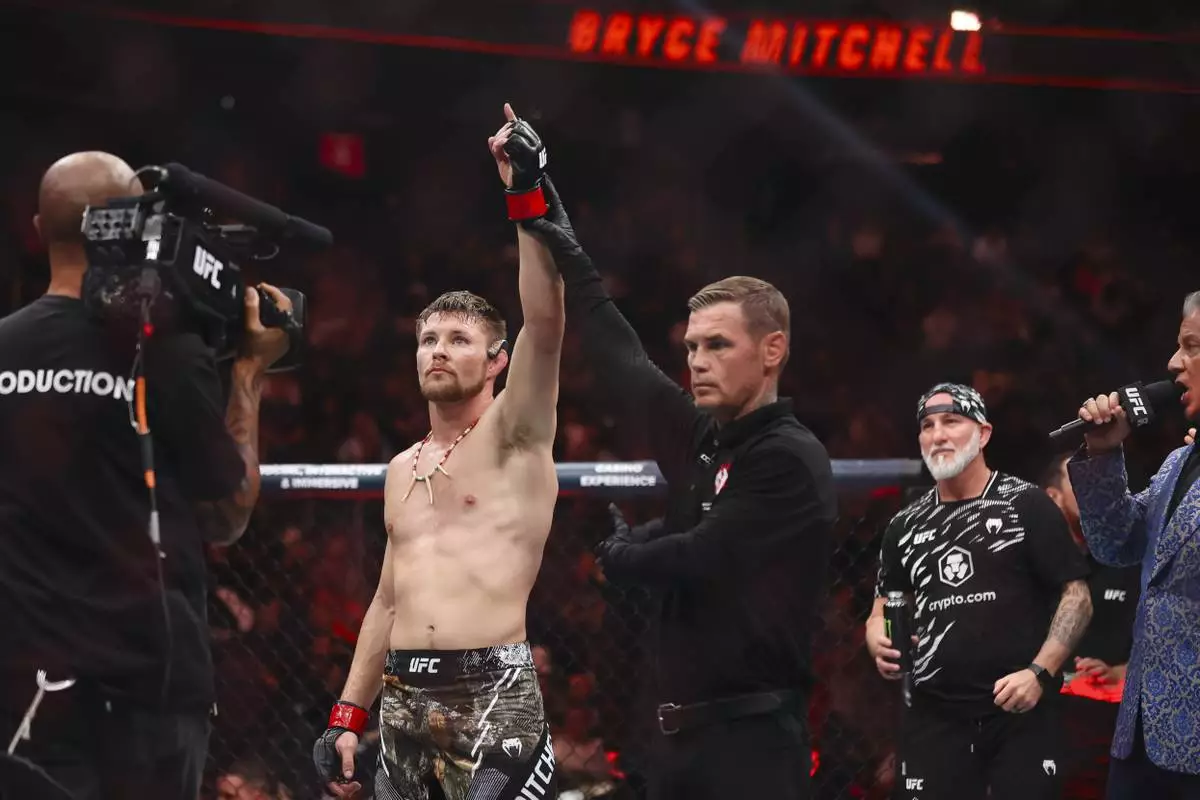 In a featherweight bout, No. 13 Bryce Mitchell (17-3-0) stopped Kron Gracie (5-3-0) 39 seconds into the third round after he followed a powerful body slam with a thunderous forearm to the head. Mitchell closed a massive -1000 favorite.