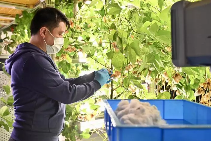 Eco-friendly farming: The Fashion Future Lab’s “Farm-to-Garment” project utilises a hydroponic cotton farming system, which significantly reduces water consumption by up to 90%. Source from news.gov.hk