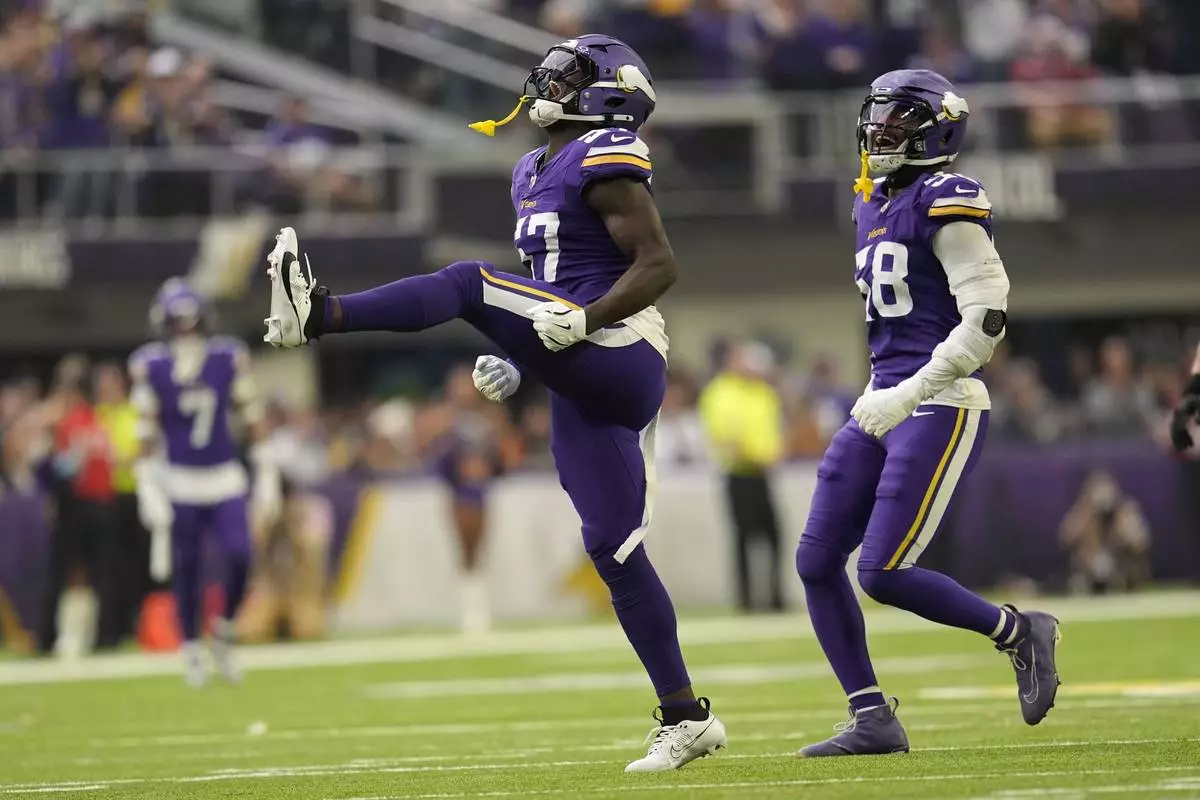 Addison and Jefferson became the first duo in Vikings history to each have 100-plus receiving yards and two-plus touchdown catches in the same game. Addison also became the first Vikings player with three receiving touchdowns in a game since Stefon Diggs caught three from Cousins in 2019. Murphy has six interceptions this season, the most for the Vikings since Jimmy Hitchcock had seven in 1998.