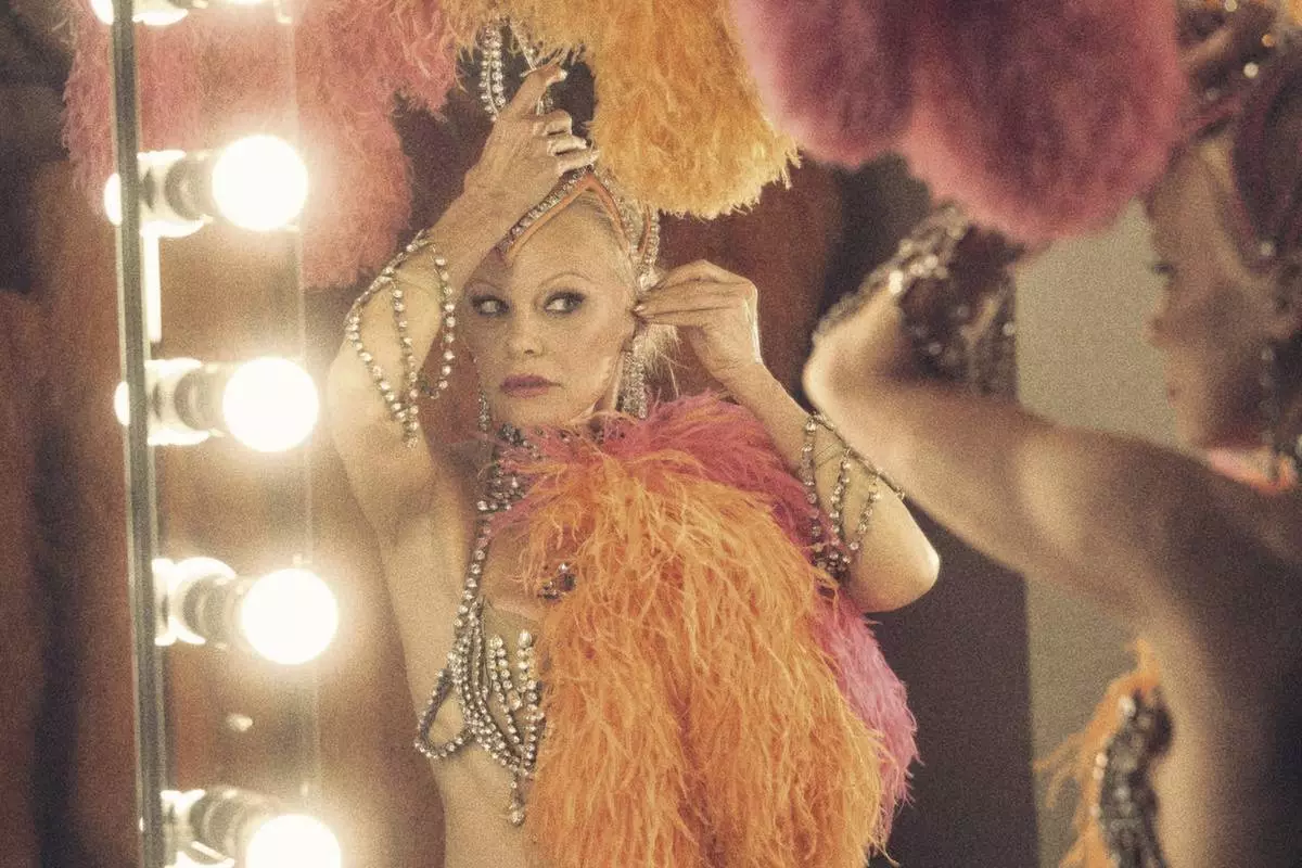This image released by Roadside Attractions shows Pamela Anderson in a scene from "The Last Showgirl." (Zoey Grossman/Roadside Attractions via AP)