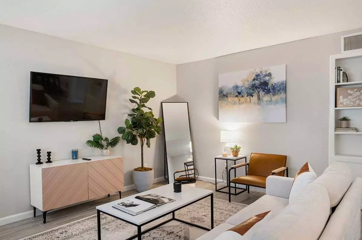 Living room in beautiful model unit at 600 Nottingham Apartments (Photo: Business Wire)