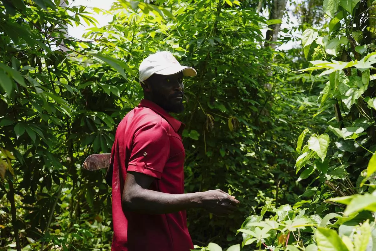 Muvunga Kakule walks through his farm outside Badengaido town in Congo, Sept. 23, 2024. (AP Photo/Sam Mednick)