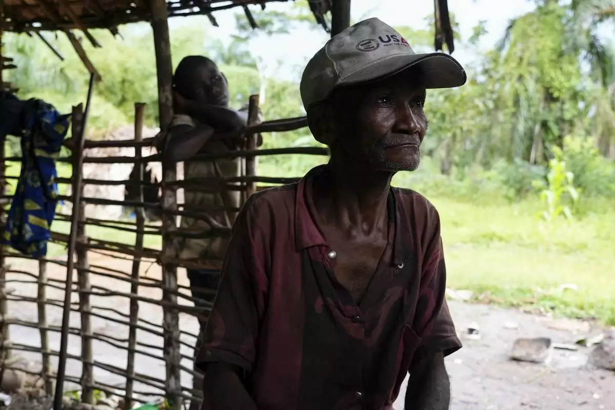 Wendo Olengama, a Pygmy chief, sits in his village in the Okapi Wildlife Reserve in Congo, Sept. 22, 2024. (AP Photo/Sam Mednick)