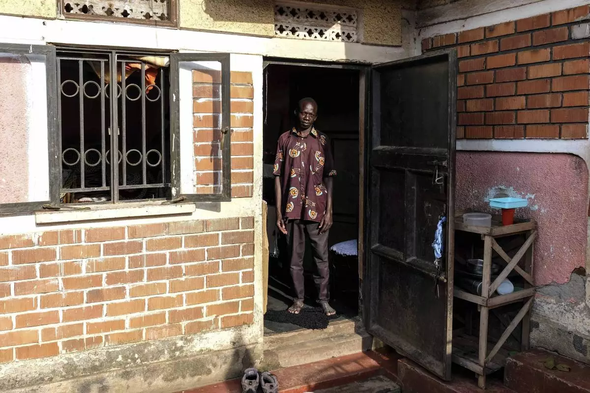 Moses Serikomawa, father of seven poses for a photo at his home in Kawempe tula village, Kampala, Uganda on Nov. 12, 2024. (AP Photo/Hajarah Nalwadda)