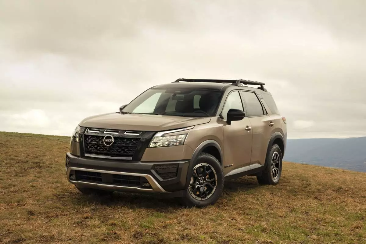 This photo provided by Nissan shows the 2025 Pathfinder. The Rock Creek version pictured here has all-terrain tires and a lifted suspension to provide a bit more off-road capability. (Nissan North America via AP)