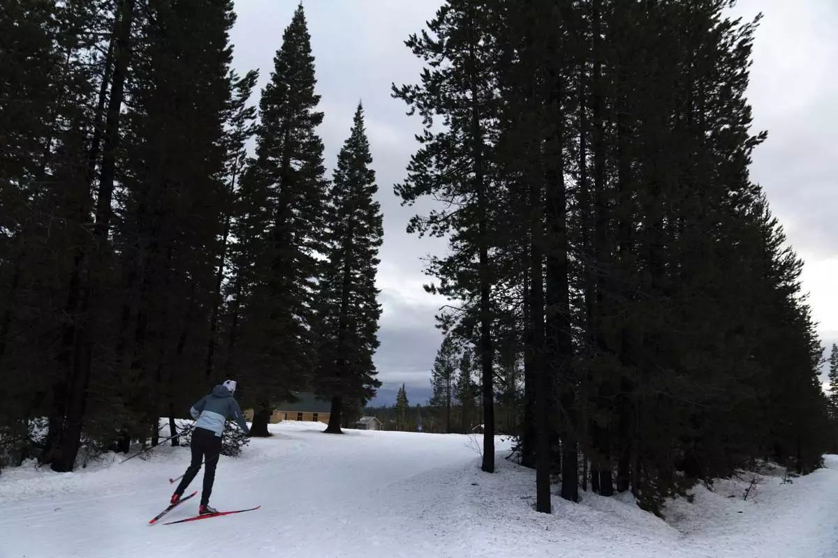 Two-time Olympian Joan Wilder skis at the Meissner Nordic Community Ski Area within the Deschutes National Forest on Nov. 22, 2024, in Deschutes County near Bend, Ore. (AP Photo/Jenny Kane)