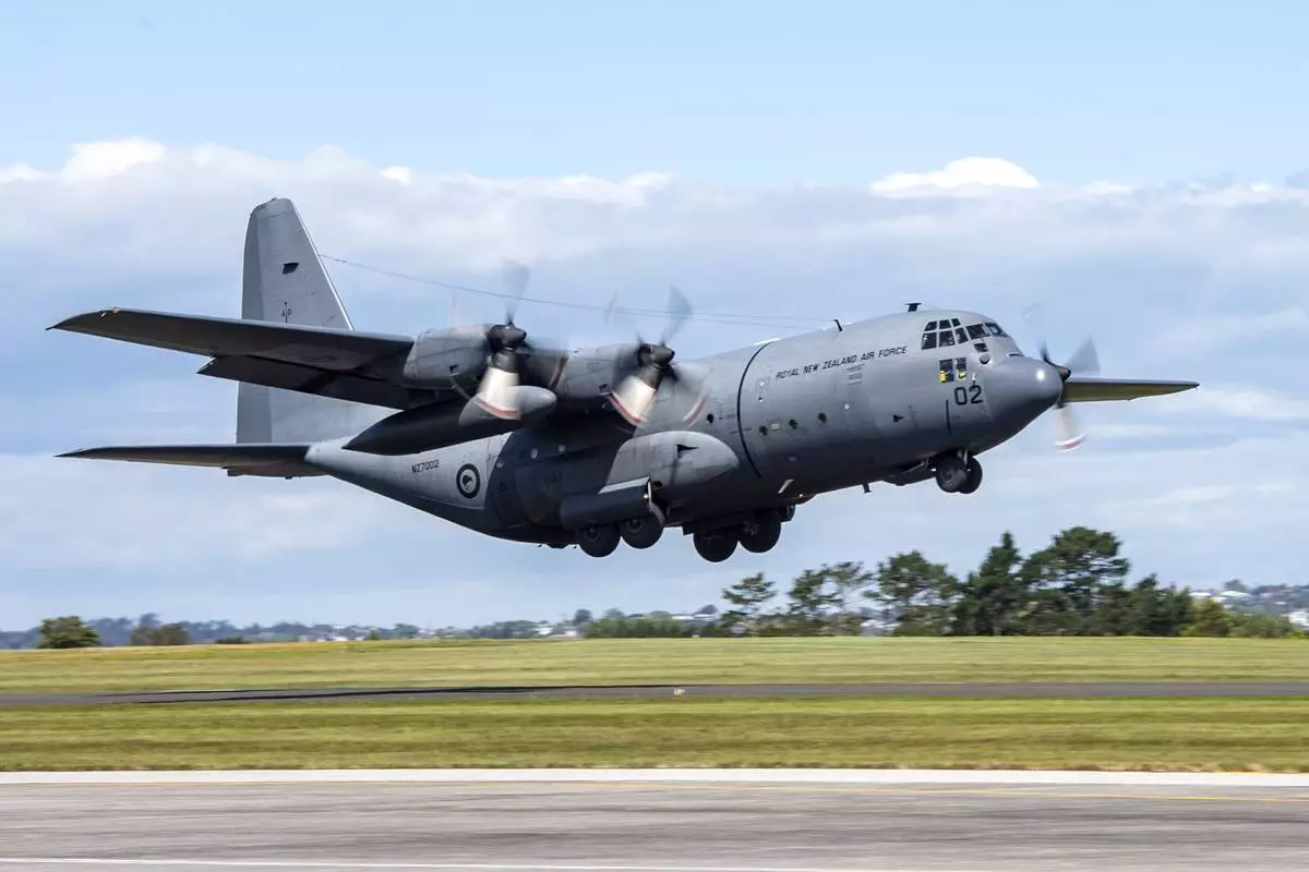 A Royal New Zealand Air Force Hercules C130 H takes off for Vanuatu, from Auckland, New Zealand, Wednesday, Dec. 18, 2024 following a strong earthquake that struck just off the coast of Vanuatu in the South Pacific Ocean, Tuesday, Dec. 17. (SGT Maria Eves/New Zealand Defence Force via AP)