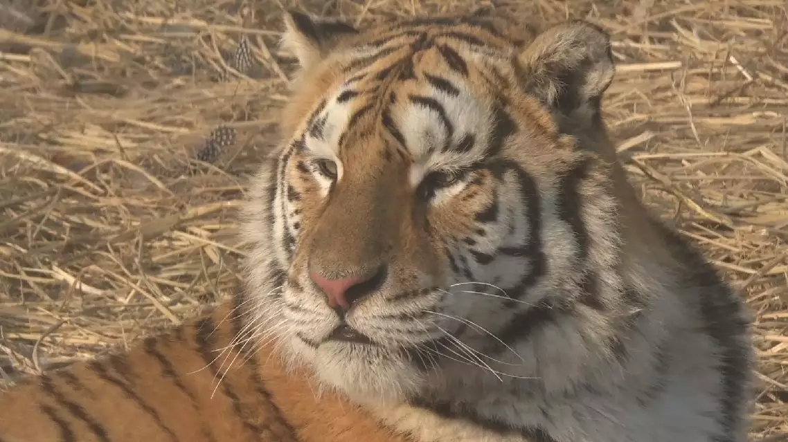 The zookeepers' work won the hearts of the Siberian tigers, and they were spotted lying casually on the straws while enjoying sunbathing.