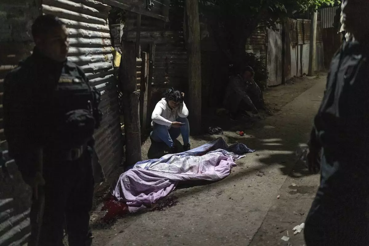 Relatives grieve over the body of 21-year-old Silvano Caballero, who was shot dead in the Villa Banana neighborhood of Rosario, Argentina, early Wednesday, Nov. 13, 2024. (AP Photo/Rodrigo Abd)