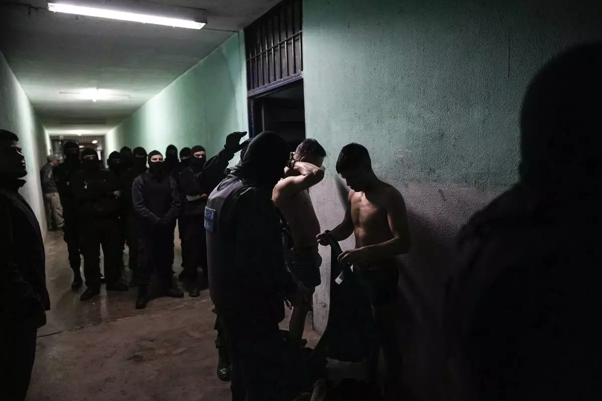 Penitentiary agents search inmates in the pavilions where the most dangerous drug gang members are held at Pinero prison in Rosario, Argentina, Saturday, Sept. 28, 2024. (AP Photo/Rodrigo Abd)