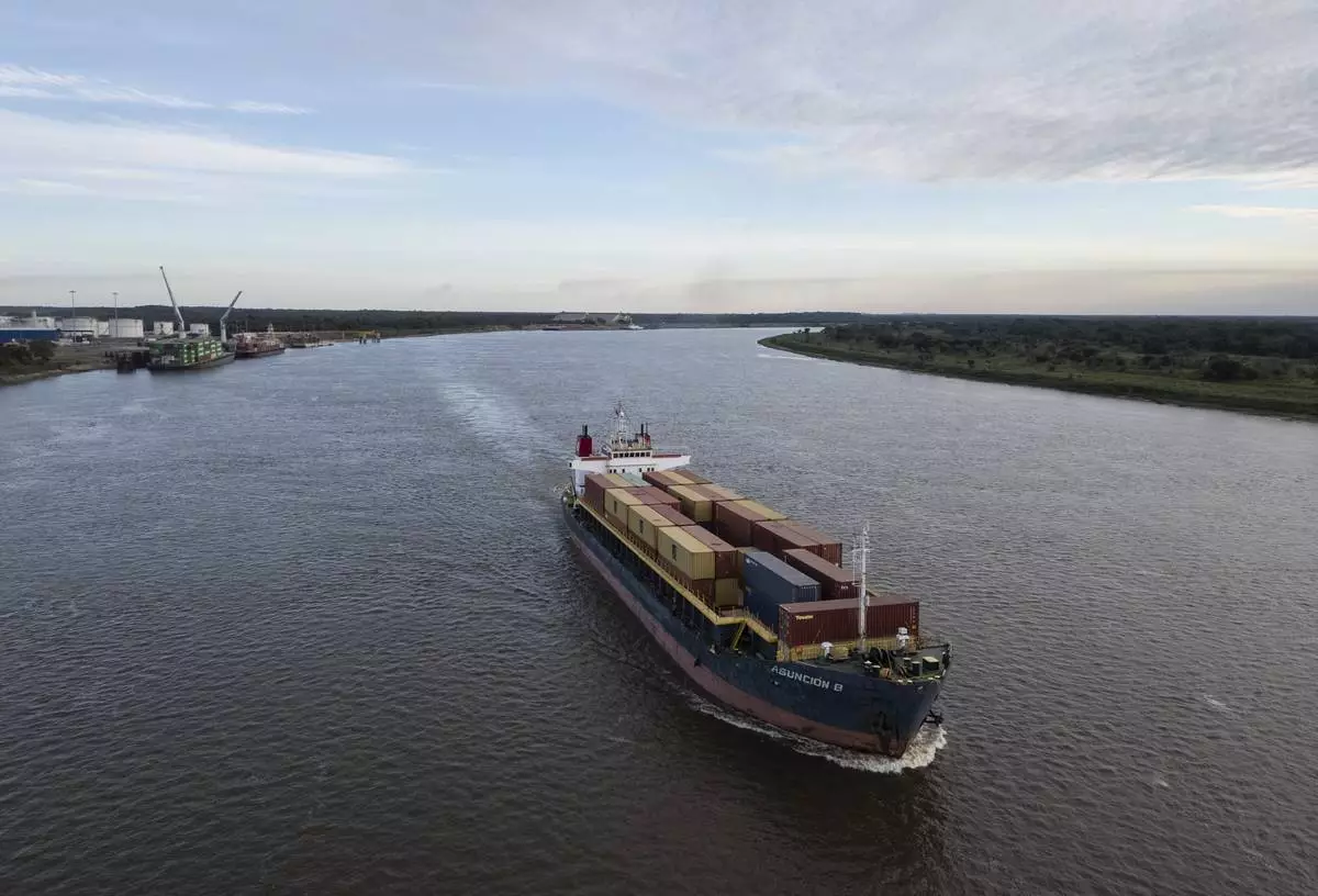 A container ship navigates the Paraguay River near the port of Villeta on the outskirts of Asuncion, Paraguay, Wednesday, July 10, 2024. (AP Photo/Rodrigo Abd)