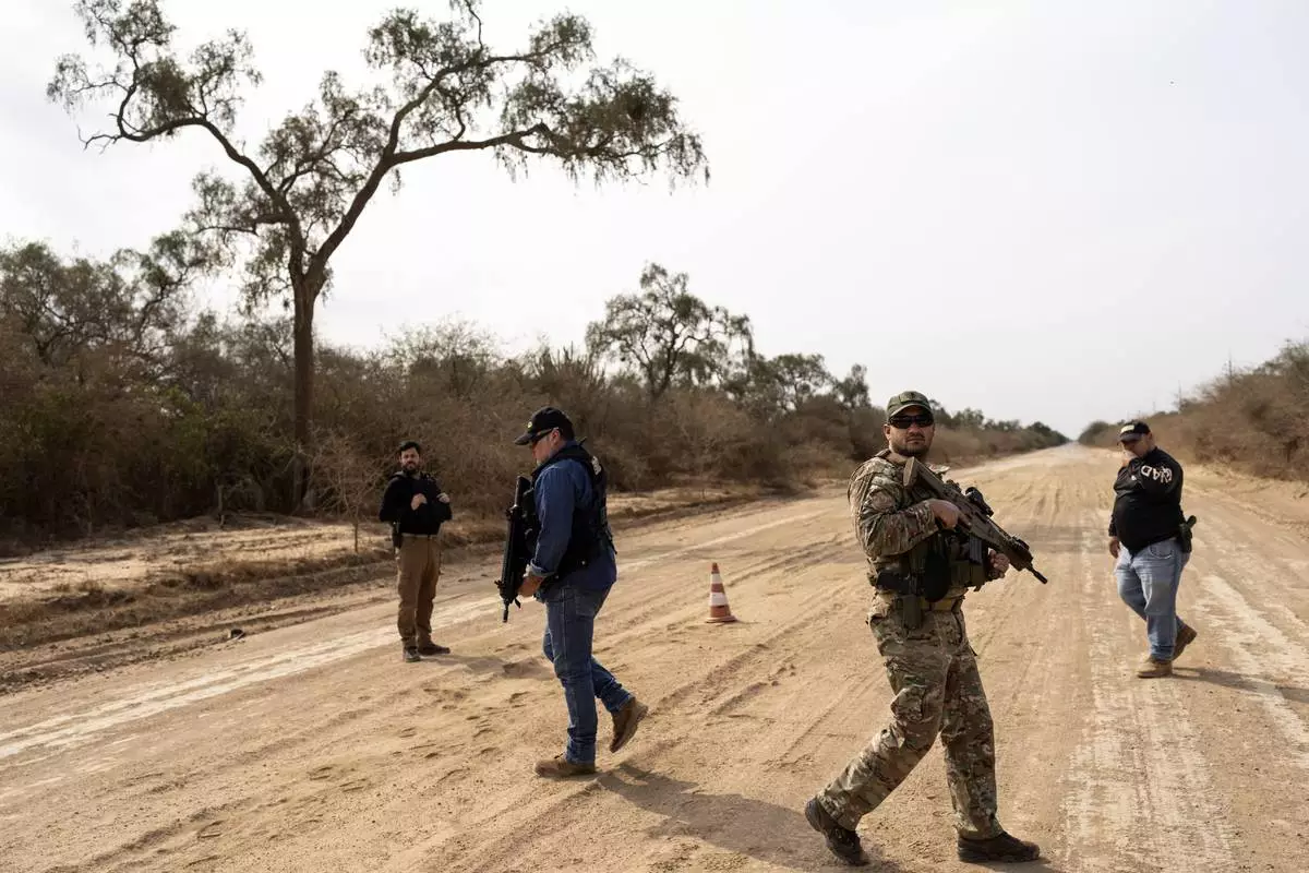 Agents from Paraguay's National Anti Drug Secretary (SENAD) stand guard at a check point in Filadelfia, the western region of Paraguay known as the Paraguayan Chaco, Tuesday, Aug. 27, 2024. (AP Photo/Rodrigo Abd)