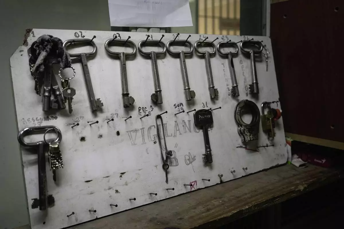 The keys used by penitentiary agents hang inside their office at the Pinero prison in Rosario, Argentina, Saturday, Sept. 28, 2024. (AP Photo/Rodrigo Abd)