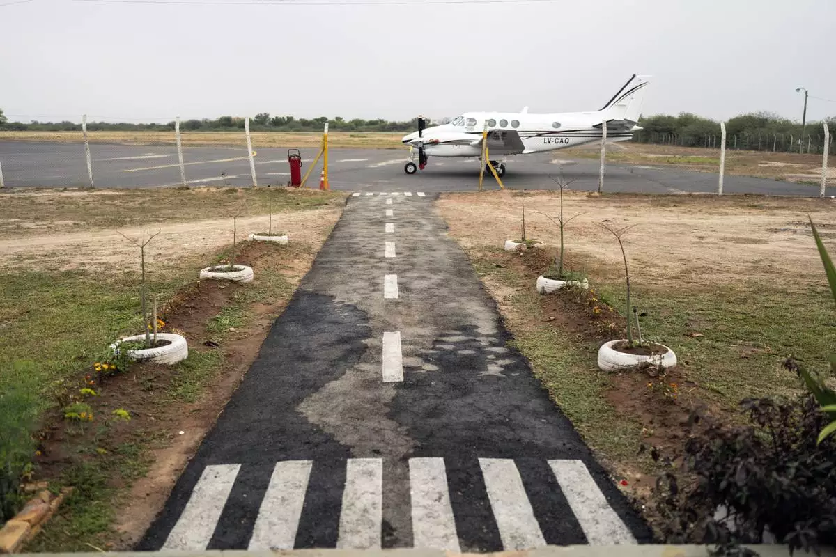 A private aircraft sits parked on the tarmac of the Dr. Luis María Argaña Airport in Mariscal Estigarribia, inthe western region of Paraguay known as the Paraguayan Chaco, Wednesday, Aug. 28, 2024. (AP Photo/Rodrigo Abd)