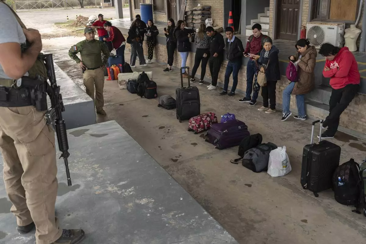 The luggage of passengers coming from Santa Cruz de la Sierra, Bolivia, are inspected by agents of Paraguay's National Anti Drug secretary (SENAD) in Mariscal Estigarribia, the western region of Paraguay known as the Paraguayan Chaco, Wednesday, Aug. 28, 2024. (AP Photo/Rodrigo Abd)