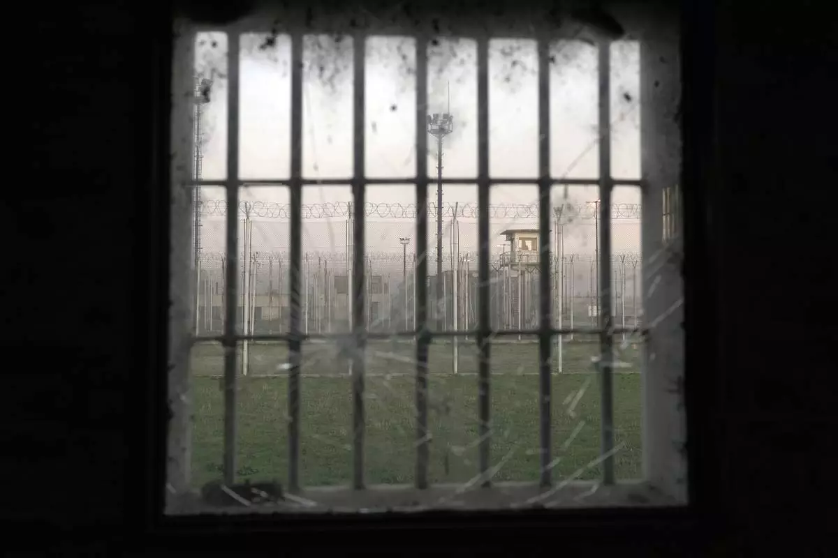 Control towers are seen through a window of a pavilion where drug trafficking gang members are held in the Pinero prison, during a security operation carried out by prison guards in Rosario, Argentina, Saturday, Sept. 28, 2024. (AP Photo/Rodrigo Abd)