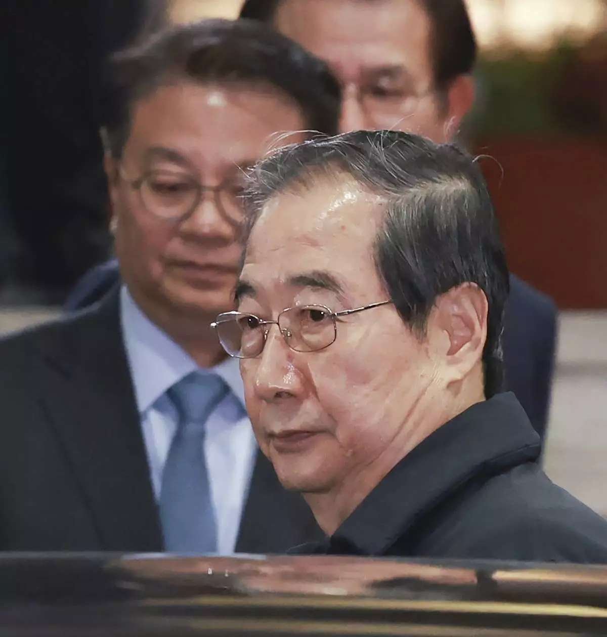 Impeached South Korean acting President Han Duck-soo gets into a car as he leaves the government complex building in Seoul, South Korea, Friday, Dec. 27, 2024. (Hong Hae-in/Yonhap via AP)