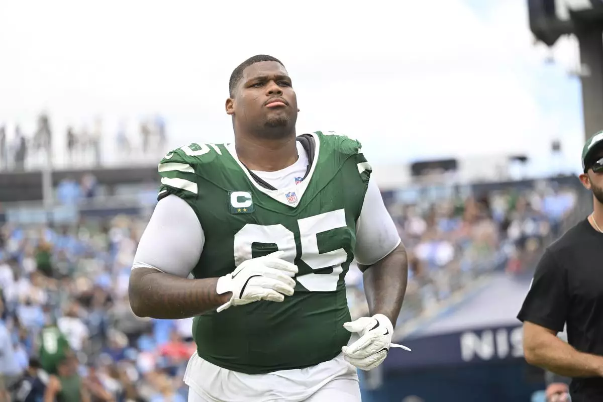 FILE -New York Jets defensive tackle Quinnen Williams (95) during an NFL football game against the Tennessee Titans Sunday, Sept. 15, 2024, in Nashville, Tenn. (AP Photo/John Amis, File)