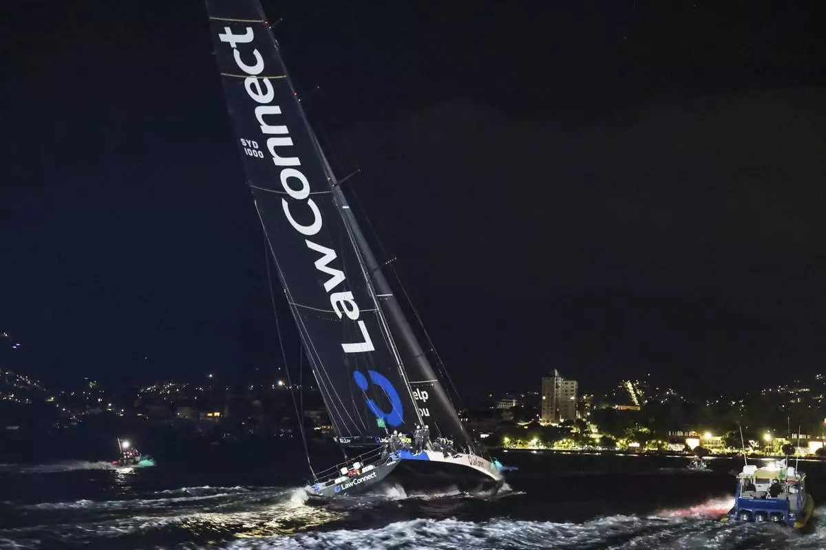 Law Connect sails down the Derwent River to win line honours in the Sydney to Hobart yacht race in Hobart, Australia, Saturday, Dec. 28, 2024. (Salty Dingo via AP)