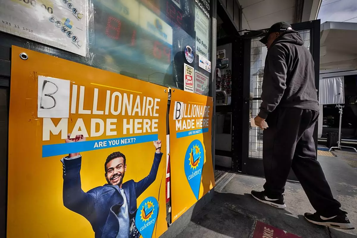 A customer arrives to buy lottery tickets at Joe's Service Center showing a $1.22 billion winning prize on Friday, Dec. 27, 2024 in Altadena, Calif. In 2022, the location had sold a $2.04 billion Powerball ticket. (AP Photo/Richard Vogel)