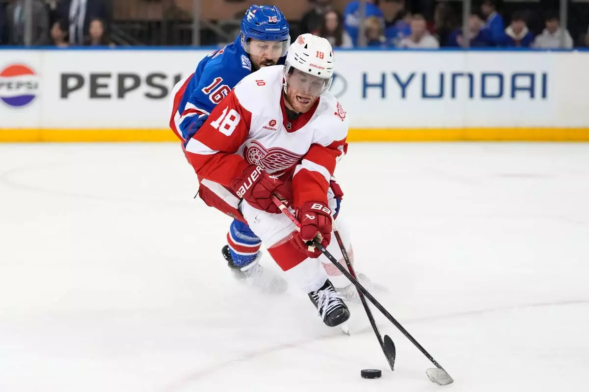 Red Wings captain Dylan Larkin appeared to get banged up from a series of collisions and was in obvious pain on the bench in the second. Larkin returned and gutted through it, unsurprising given what's at stake.