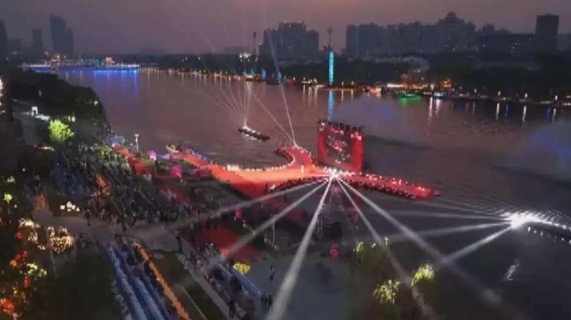 With real scenes of the Grand Canal as the backdrop and stage, spectators from tour boats with panoramic ceilings enjoyed the 55-minute immersive performance that presents the canal's thousand-year history along a 3.5-kilometer stretch of the river.