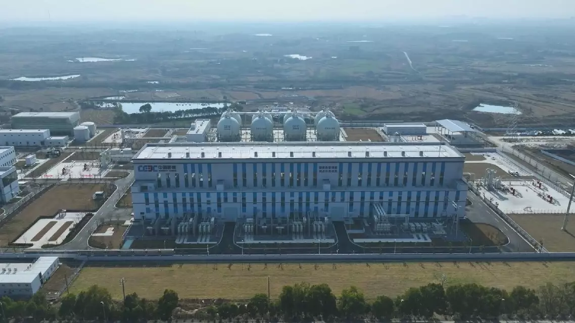 A compressed air energy storage (CAES) power station utilizing two underground salt caverns in Yingcheng City, central China's Hubei Province, was successfully connected to the grid at full capacity on Thursday, marking its official commencement of commercial operations. The project, also called Nengchu-1, utilizes the caverns of an abandoned salt mine, about 600 meters deep, as its gas storage facility. This approach creates a super "power bank" with a single unit power output of up to 300 megawatt, a storage capacity of 1,500 megawatt-hours, and an underground gas storage volume of 700,000 cubic meters, according to China Energy Engineering Corporation (CEEC), one of the project's major investors. The single unit power, energy storage capacity and conversion efficiency of this project, which broke ground in 2022, has set three world records among similar salt cavern CAES power plants, the company said. "Nengchu-1 stands out with ten features, including high power, large capacity, deep energy storage capacity, strong grid-forming capacity, and being complete green, reliable and safe. We have opened up a new track and path, and solved key technological bottlenecks as well. In the next step, we will make comprehensive plans focusing on higher efficiency, lower cost, larger-scale deployment, and broader application scenarios," said Song Hailiang, chairman of the CEEC. The principle of CAES in salt caverns is similar to that of conventional pumped storage power plants. During periods of low electricity demand, electrical energy is used to compress air and store it in underground salt caverns. The compressed air can then be released during periods of peak demand to generate electricity, experts explained. "After the CAES was put into use in Yingcheng, it can store energy for eight hours and release energy for five hours every day, with its conversion efficiency reaching almost 70 percent. It is estimated to generate an annual average of approximately 500 million kilowatt-hours of electricity, which can meet the annual power demand of 750,000 residents in Yingcheng," explained Yang Xuan, deputy chief engineer at Hubei Electric Power Dispatching and Control Center of State Grid. Utilizing the existing cavities not only mitigates geological hazards such as land subsidence and collapse in the salt mines, but also transforms the mined-out areas into valuable underground resources, said experts, thus effectively turning waste into treasure.