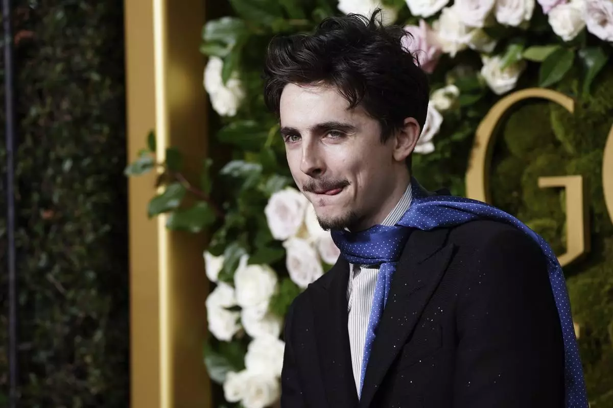 Timothee Chalamet arrives at the 82nd Golden Globes on Sunday, Jan. 5, 2025, at the Beverly Hilton in Beverly Hills, Calif. (Photo by Jordan Strauss/Invision/AP)