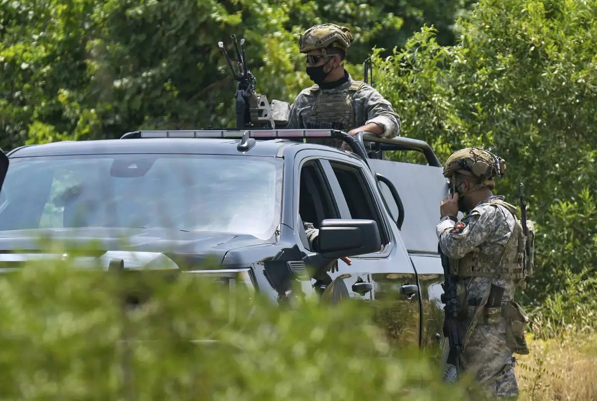 Forces of the regional Kurdish administration secure the area of the Jasana Cave ahead of a symbolic disarmament ceremony by the separatist PKK group as part of the peace process with Turkey, in Sulaymaniyah governorate, Iraq, Friday, July 11, 2025. (AP Photo/Hadi Mizban)