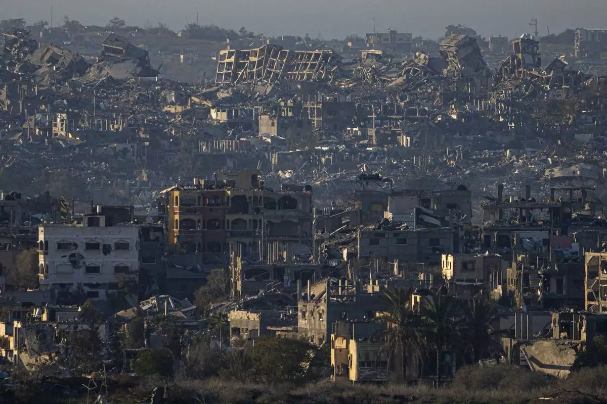 Destroyed buildings are seen inside the Gaza Strip from southern Israel, Monday, Jan. 13, 2025. (AP Photo/Ariel Schalit)