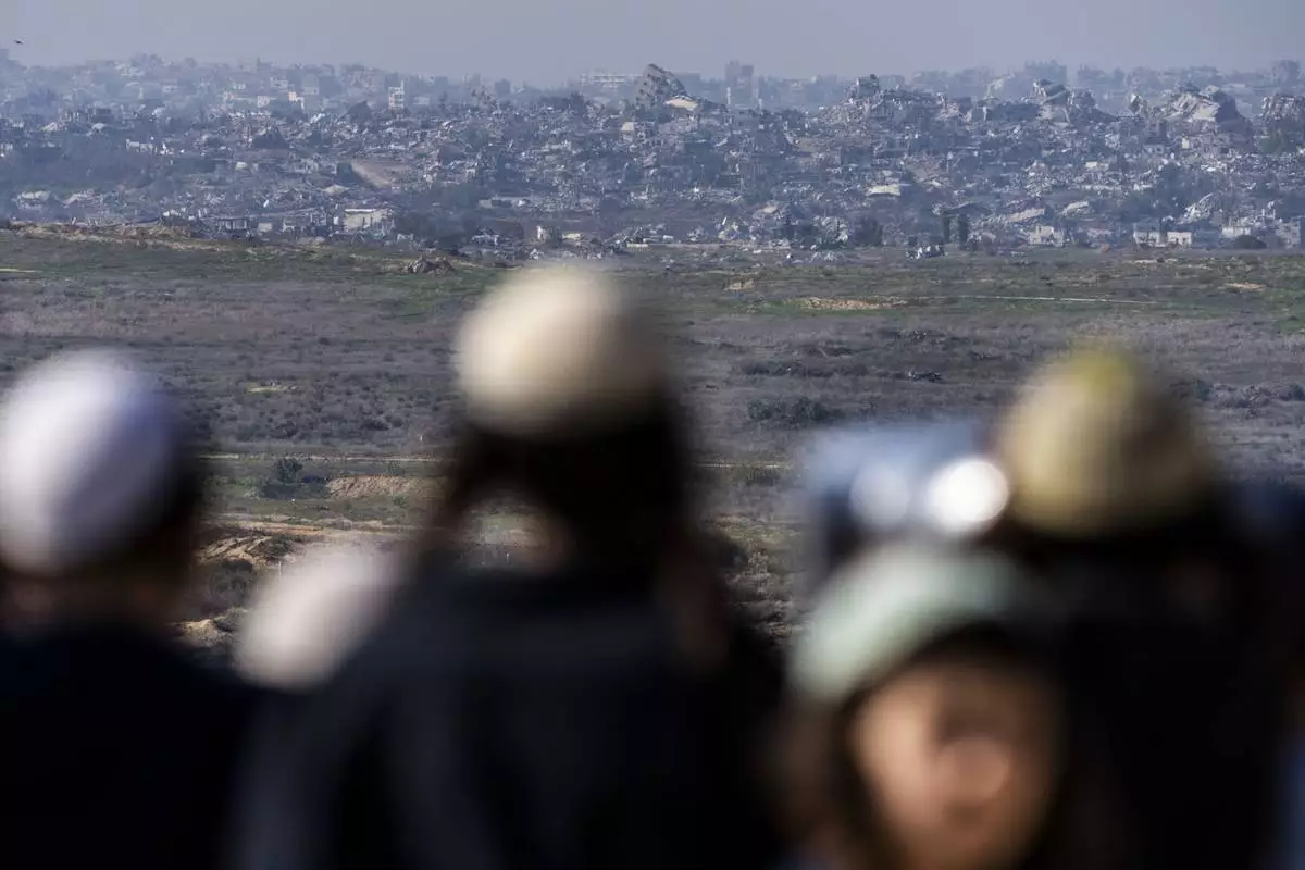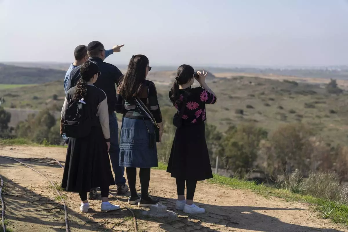 People watch the Gaza Strip from an observation point in Sderot, southern Israel, Monday, Jan. 13, 2025. (AP Photo/Ariel Schalit)