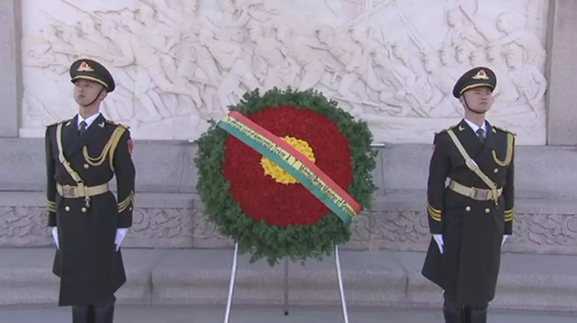 The visiting Prime Minister of Grenada Dickon Mitchell laid a wreath at the Monument to the People's Heroes at Tian'anmen Square in Beijing on Monday morning.